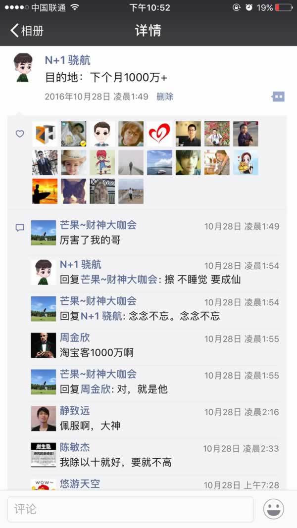 这是我放大之前10月底发的一个朋友圈,给自己定的目标是11月份要实现1000万的收益,虽然这个目标没有达到,而且差了挺多,但是没关系,心态放好,积累了经验,争取明年双十一的时候实现更高的目标。