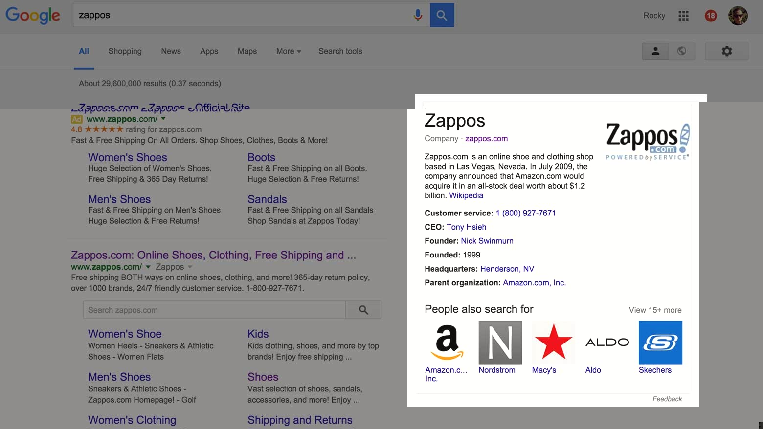 根据Conductor的高级内容策划Charity Stebbins的说法,“谷歌自己会挑选品牌”。代表可靠企业的“brand box”已经出现在了谷歌的页面搜索结果中,这对企业宣传来说是个巨大优势。