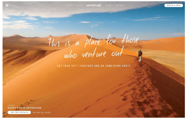 Adenture.com跟其他的旅行网站不同,没有强调目的地和价格,而是推广一种旅行体验——梦想般的冒险。