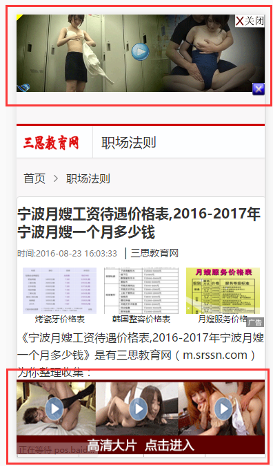 1、在狭小的手机页面布设大面积广告遮挡主体内容